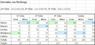 Para os mais interessados em dados estatísticos, aqui fica uma análise simples dos Rankings do CFB, reportando-se esta análise aos 3 conjuntos de Rankings publicados na época 08/09 - Dez 08, Abr 09 e agora, Ago 09.
